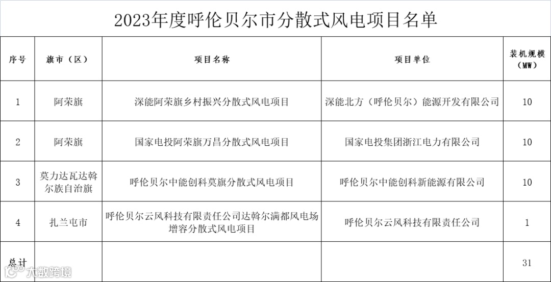 8月24日,内蒙古呼伦贝尔发改委发布《2023年度呼伦贝尔市分散式风电、分布式光伏发电项目优选结果的公示》。
