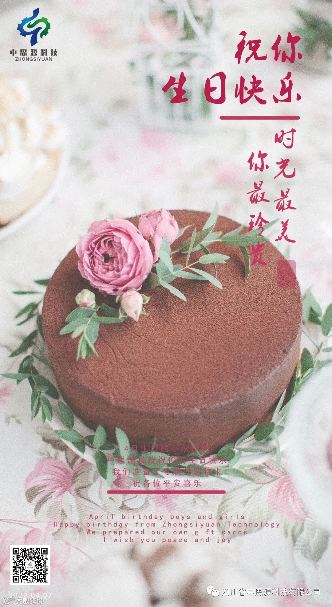 四川省中思源科技有限公司祝福2022年4月份生日的员工,生日快乐,平安吉祥