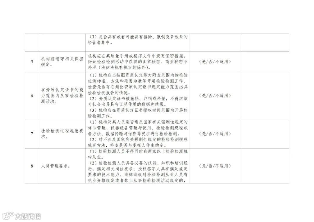 各地市场监管部门要引导检验检测机构扎实开展自查,深入排查风险隐患,系统做好风险分析,并采取相应有效措施预防、规避和降低运行风险。组织开展“检验检测机构诚信守法倡议活动”,促使检验检测机构认真落实主体责任,严格履行安全生产第一责任人的责任。自查重点:检验检测活动是否符合国家相关法律法规的规定,遵循客观独立、公平公正、诚实信用原则;检验检测数据、结果是否真实、客观、准确;管理体系是否有效运行,是否能够持续符合资质认定条件和要求;从事检验检测活动所必需的检验检测设备设施是否完备;是否遵守反垄断法等相关法律规定,依法合规开展生产经营;是否制定安全作业管理程序并有效实施,对有毒有害物质、化学危险品、易燃易爆物质有效管控等。