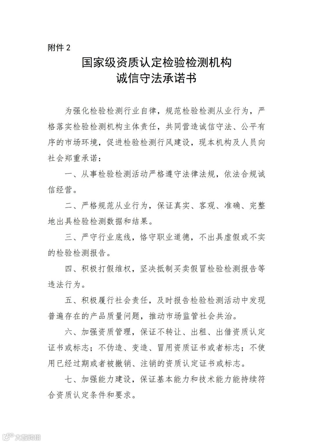 2.国家级资质认定检验检测机构诚信守法承诺书
