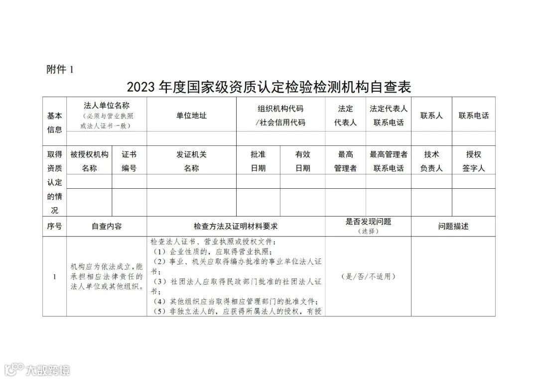 附件:1.2023年度国家级资质认定检验检测机构自查表