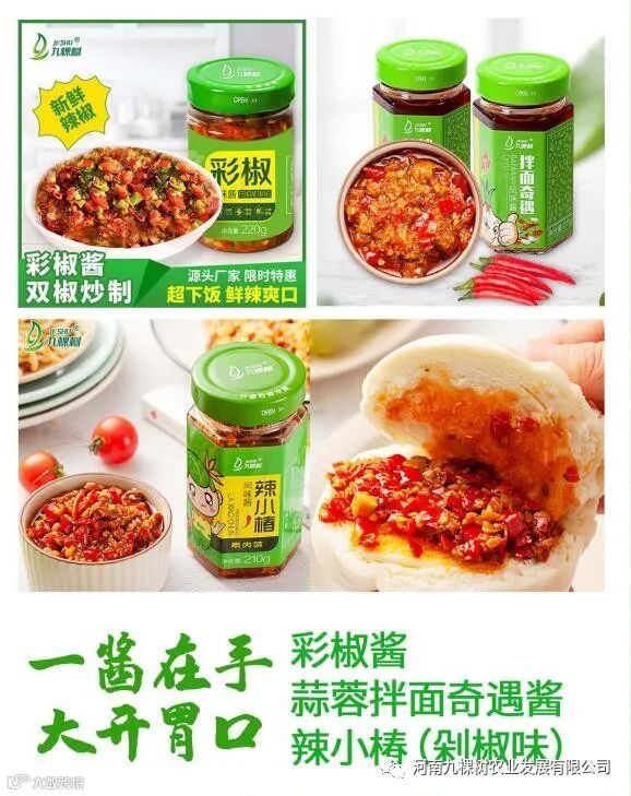 有甜有咸,生活中的酸甜苦辣滋味更是多种多样。九棵树为您的生活添滋味。酸甜可口的九棵树洛川苹果一直是我们的口碑产品。辣味十足的剁椒酱更是面条馒头的灵魂伴侣,三种口味的剁椒酱满足喜欢辣味的味蕾。
