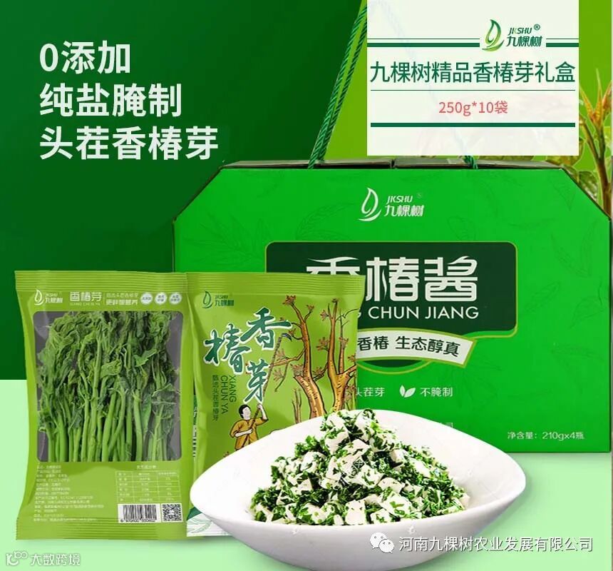 九棵树的招牌产品香椿酱、香椿小菜更是毋庸置疑,树上蔬菜,头茬嫩芽,炒制而成。喜欢吃香椿的家人们绝对不能错过。精致大气的礼盒包装,送亲戚朋友拿的出手超有面子。