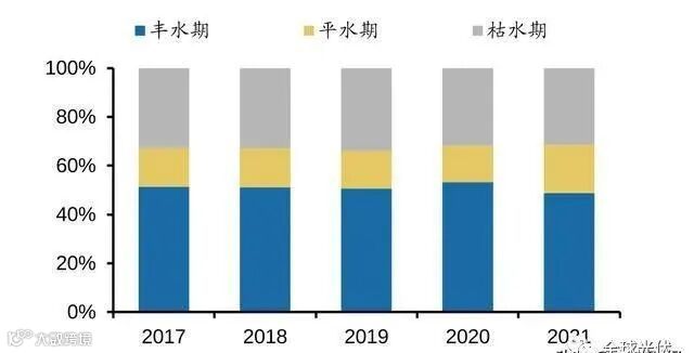 四川省之所以发电量大,很大一部分原因是四川省是水力发电大省。但是水力发电最终还是看天意的,不确定性很高,从下图数据也可以很明显地看到,雨水充足的时候发电量喜人,同样的当雨水缺乏的时候,那么发电量自然就是差强人意了。