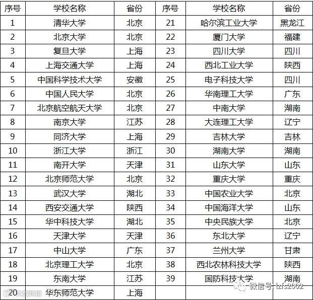 985大学名单