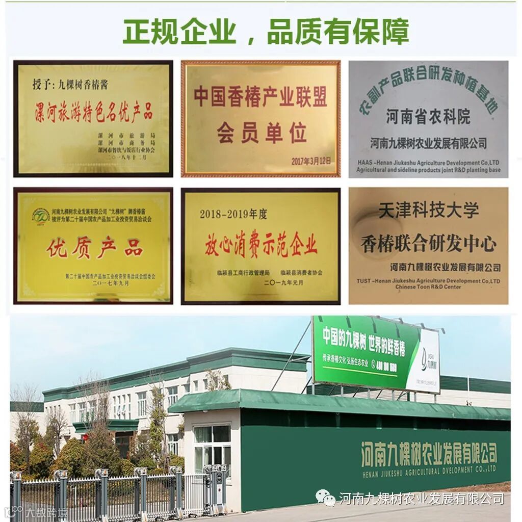 河南九棵树农业发展有限公司,是2016年新成立的新型现代农业发展集团,注册资本6000万元。是一家集有机香椿及有机农产品种植、研发、生产、深加工、销售为一体的现代农业产业化龙头企业。
