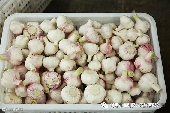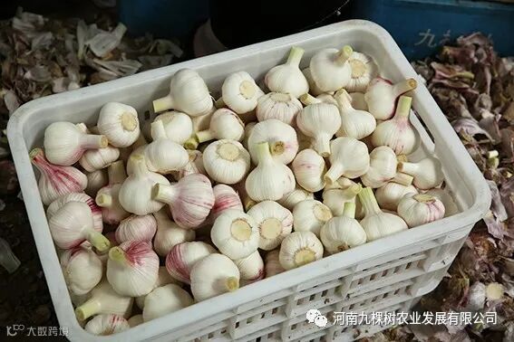 九棵树厂区毗邻皇帝庙乡,具有天然的地理优势,九棵树出产的糖蒜全部采用皇帝庙乡出产的“玉皇大蒜”,新鲜挖出的大蒜,剥去外皮之后,紫白相间,煞是好看。