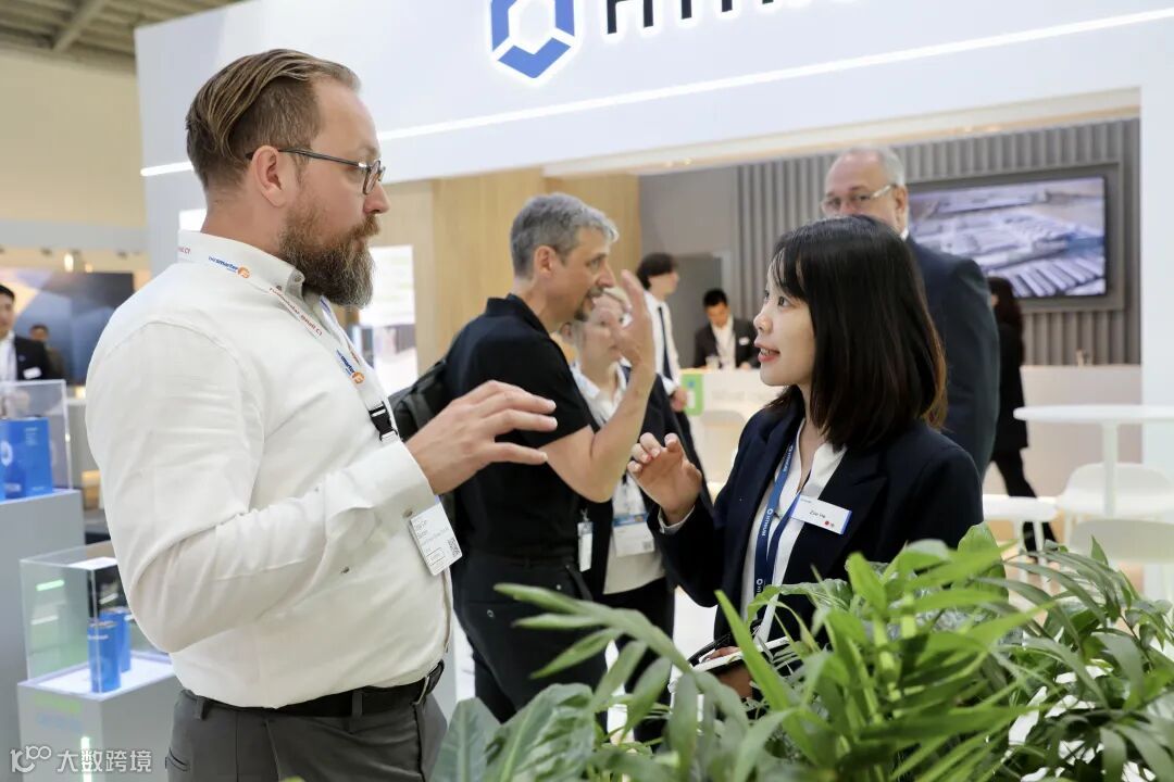 本届展会上,海辰储能重点展示了其基于专业储能电池平台的产品方案,包括300Ah电力储能专用电池、大圆柱户用储能专用电池以及模组化液冷储能户外柜和集装箱式液冷储能系统,现场产品展示亮点纷呈,吸引了众多宾客驻足参观交流。