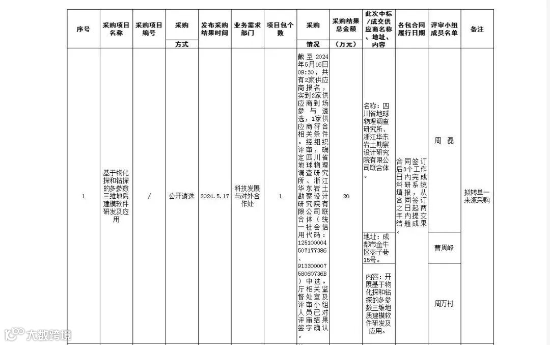 近日,四川省地球物理调查研究所以牵头单位的身份,中标2024年四川省自然资源厅“揭榜挂帅”科研项目“基于物化探和钻探的多参数三维地质建模软件研发及应用”,这是地球物理所挂牌以来首次中标省自然资源厅“揭榜挂帅”科研项目,此次中标为地球物理所向数字化产业转型升级打下了坚实基础。