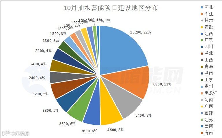 2022年10月,共有41个抽水蓄能电站项目更新了动态,规模超60GW,包含预可行性研究报告审查、签约、开工等动态,项目规模普遍在1200MW-2400MW,其中浙江省抽水蓄能项目进展最多。