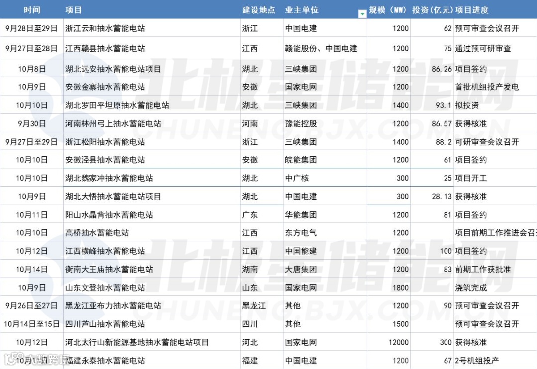 10月14日,大唐华银电力股份有限公司发公告称,收到湖南省发展与改革委员会《关于同意开展衡南大王庙抽水蓄能电站前期工作的函》。衡南大王庙抽水蓄能电站总装机容量120万千瓦,总投资约为80亿元,计划2030年建成投产。
