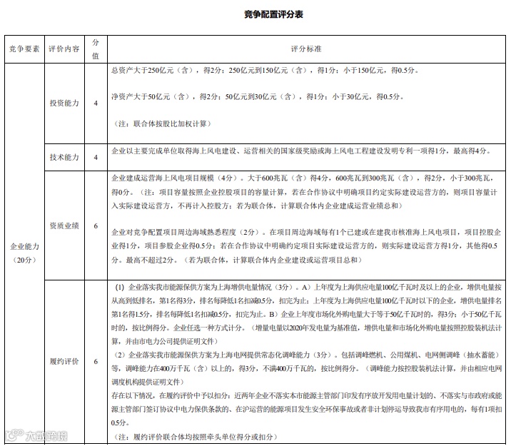 1.申报电价。参与竞争配置的投资主体申报上网电价不得高于现行上海公用燃煤发电上网基准电价(0.4155元/千瓦时)。