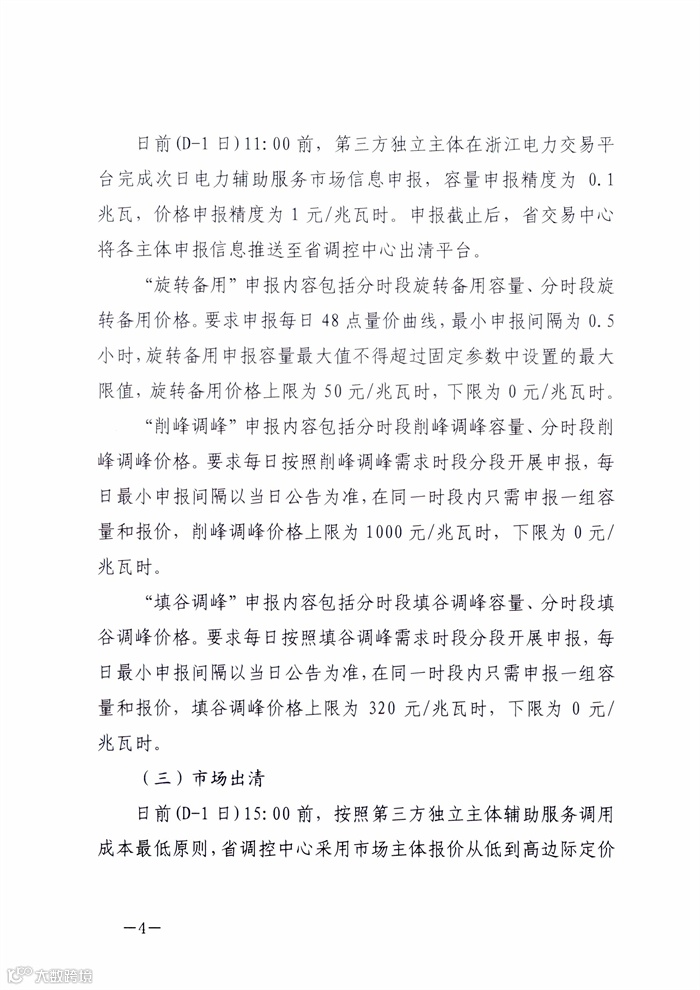 “削峰调峰”申报内容包括分时段削峰调峰容量、分时段削峰调峰价格。削峰调峰价格上限为1000元/兆瓦时,下限为0元/兆瓦时。