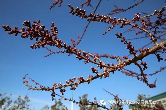 “春色满园关不住,一枝红杏出墙来。”园区杏树已经长出了花骨朵,含苞待放,娇艳欲滴。