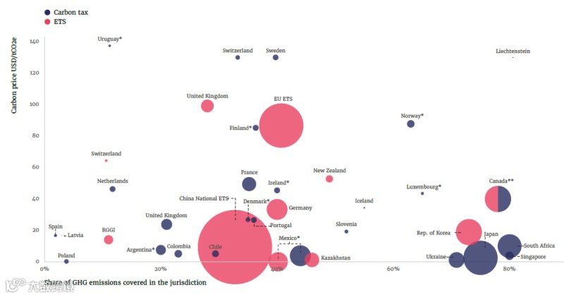 (一) 直接碳定价工具运用日趋普遍,但全球覆盖率依然很低