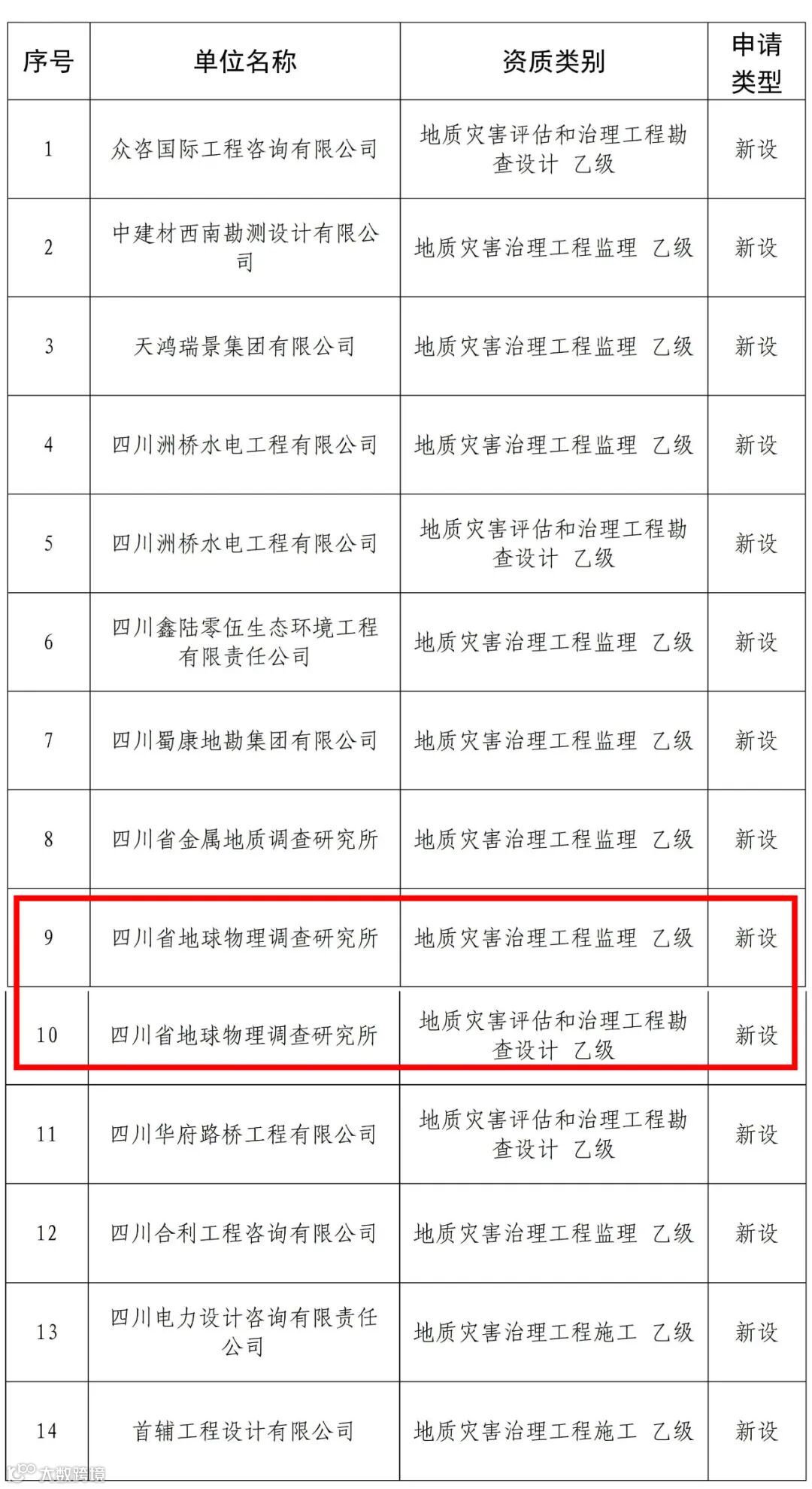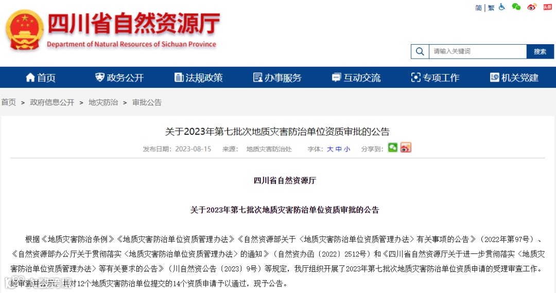 自然资源厅公布2023年第七批次地质灾害防治单位资质审批公告
