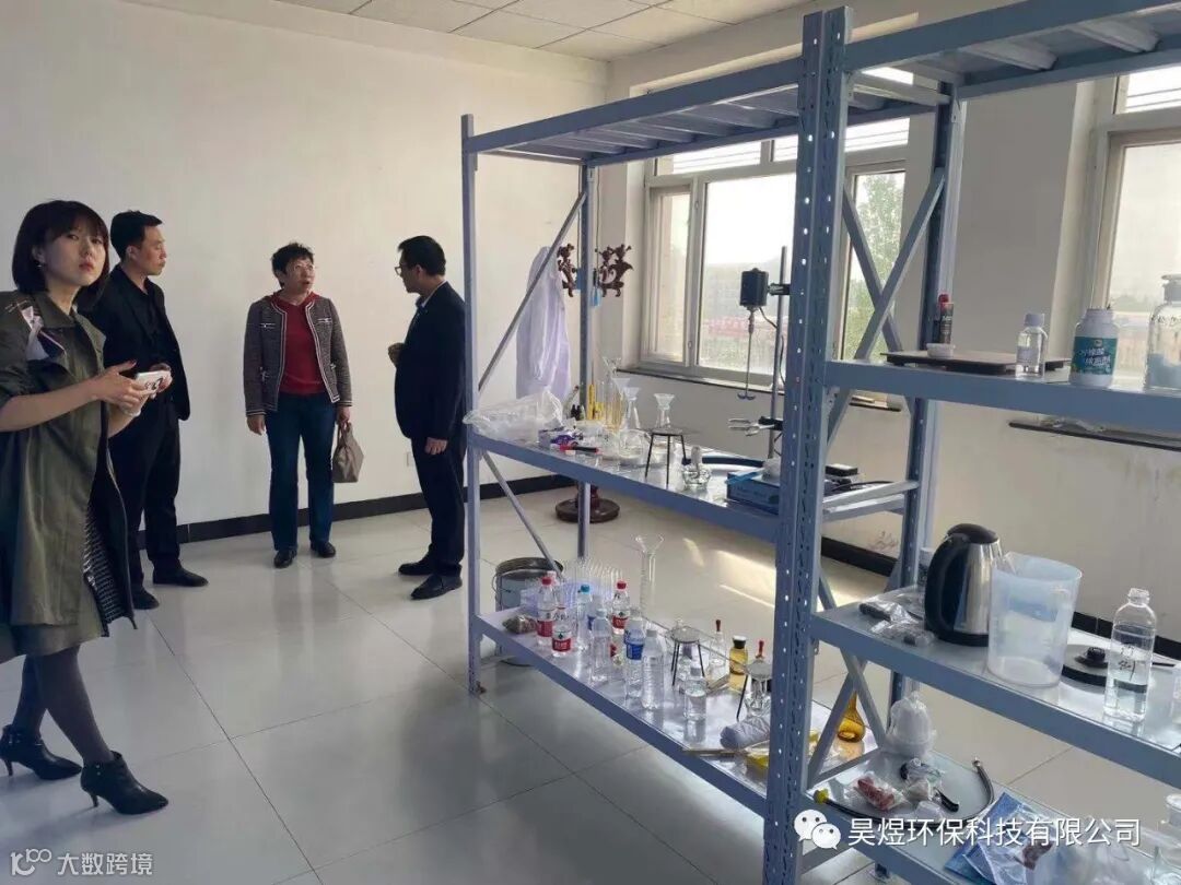 首先,在昊煜环保总经理郭仁乐及公司高管的陪同下,带领桥西区教育体育科学技术局的领导参观了实验室、生产车间。