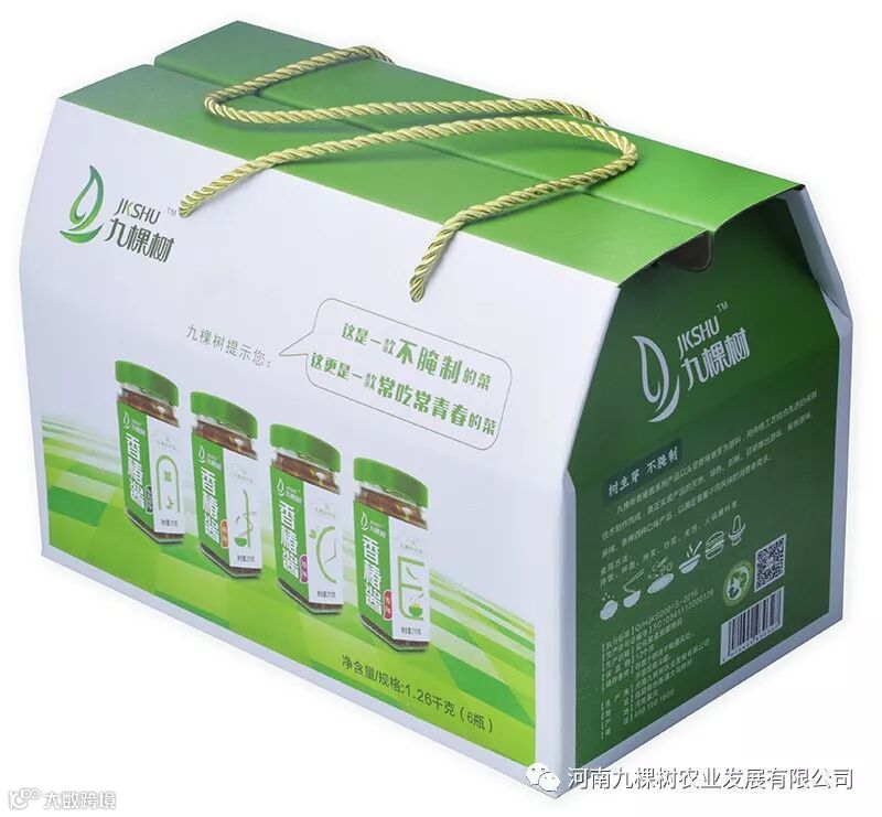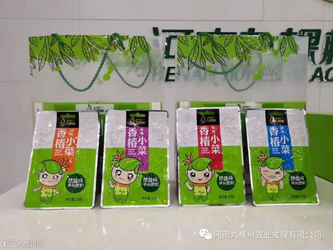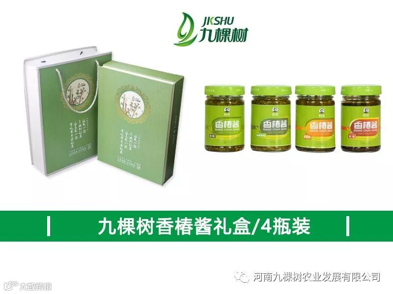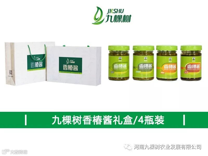 九棵树香椿酱系列产品以谷雨前的头茬香椿嫩芽为原料,用传统工艺结合先进的保鲜技术制作而成,真正实现产品的天然、绿色、新鲜,目前推出原味、蜜制原味、麻辣、香辣四种口味产品,以满足不同口味消费者的需求。