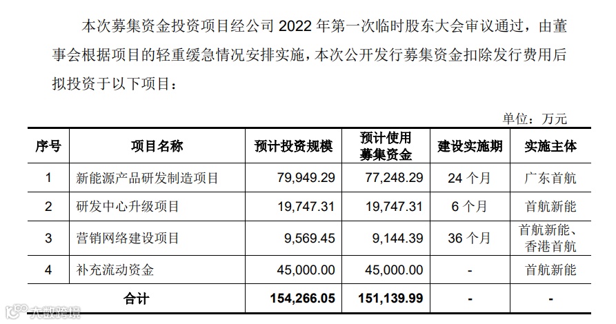 本次IPO,首航新能计划发行不超过 9,300 万股,计划募资15.1亿元。其中,7.7亿元用于新能源产品研发制造项目,4.5亿元用于补充流动资金,1.97亿元用于研发中心升级项目,9,144.39万元用于营销网络建设项目。