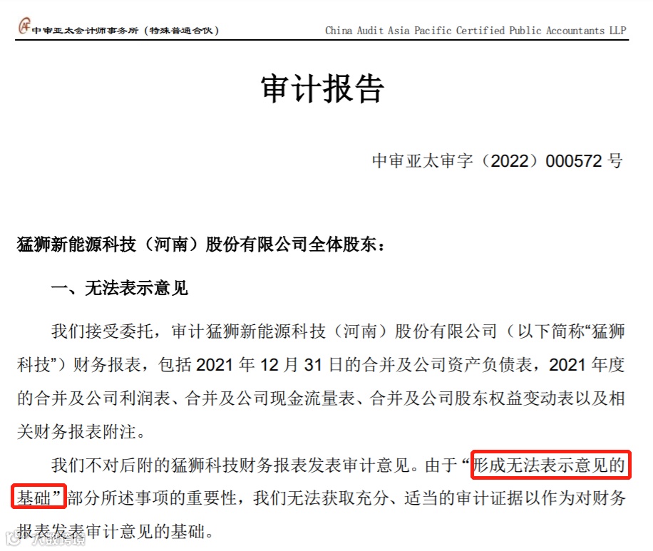 财务会计对业绩报表“无法表示意见”;