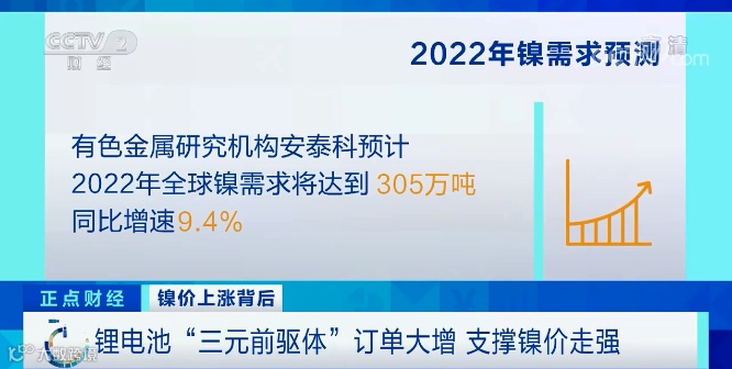 锂电池“三元前驱体”订单大增 支撑镍价走强