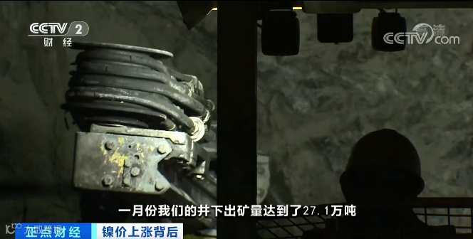 凿岩台车的机械臂正在进行作业,碎石在轰鸣声中散落,坚硬的岩壁中富含工业发展所需要的镍和钴等各种金属原料。记者了解到,由于近期镍钴需求增长,矿区出矿量不断增加。