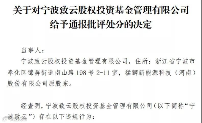值得一提的是,12月20日,*ST猛狮发布公告,公开深圳交易所对其原股东宁波致云股权投资基金管理有限公司(简称“宁波致云”)的通报批评处分。公告称,宁波致云于2019 年11月27日承诺增持“*ST 猛狮”的股份,且在增持完成后 12 个月内不减持上述股票。但是,在2021年8月27日,宁波致云以集中竞价方式减持其持有的*ST 猛狮股份644.55万股,占*ST 猛狮总股本的 1.14%。也就是说,宁波致云由说好的增持,变成了偷偷地减持。深圳交易所对宁波致云进行相对应的处分。