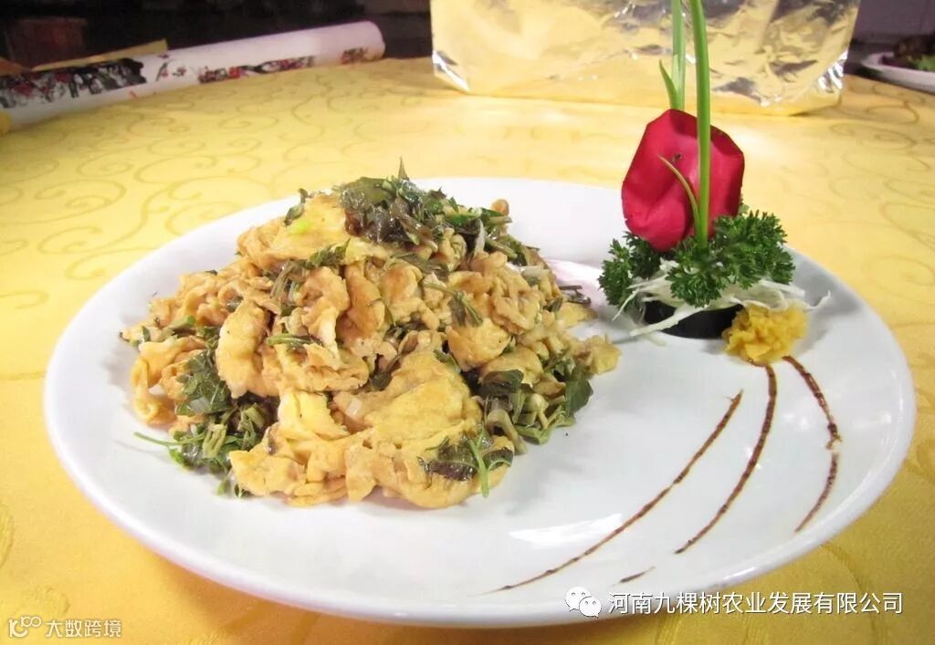 民间相传,皇帝郊外打猎,追一野兽,跑离了大队人马。天黑时皇帝又累又饿,抬头见山上有一户人家,想讨顿饭吃,主人一听皇帝来到自己家,连忙把家中仅有的四个鸡蛋拿了出来,准备给皇帝吃。可是,四个鸡蛋炒不了一盘。初春时节,山野之中一时又没有其它菜肴,主人想来想去, 突然,想想院中那棵香椿树。 他马上从树上掰下几个嫩芽和四个鸡蛋一起炒,谁知端上桌子后,皇帝一看非常高兴。这盘鸡蛋炒香椿,有黄有绿,有红有白,油光鲜亮,又嫩又香。皇帝吃遍山珍海味,从没吃过这道菜,觉得清香无比,赞不绝口。皇帝回到宫里,就把这道香椿炒鸡蛋列入宫廷御膳,后宫嫔妃吃后也无不称赞。
