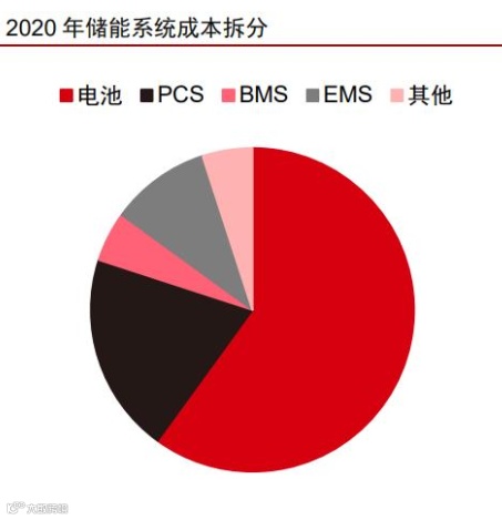 储能系统是以电池为核心的综合能源控制系统。储能系统主要包括电池组、双向变流器(PCS)、能量管理系统(EMS)、电池管理系统(BMS)及其他电气设备等多个部件构 成,其中电池组是储能系统的核心,主要包括磷酸铁锂和三元电池;PCS 可以控制储能电 池组的充电和放电过程,进行交直流的变换;EMS 负责数据采集、网络监控和能量调度等;BMS 主要负责电池的监测、评估、保护及均衡等。电化学储能发展潜力巨大,各领域龙头都纷纷提前布局储能赛道不同环节。
