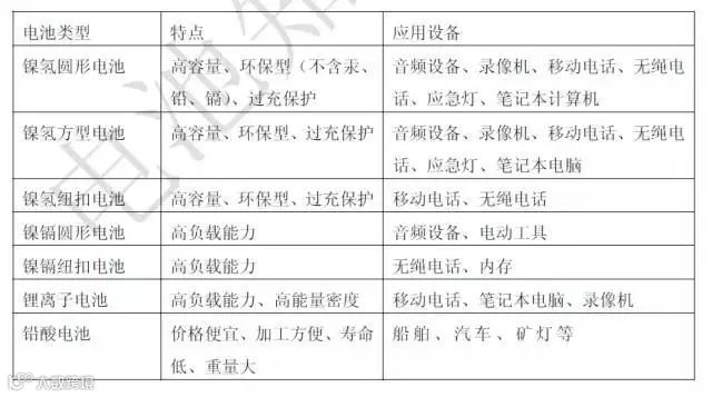 88.可充电电池有哪些类型?分别适于哪些设备?