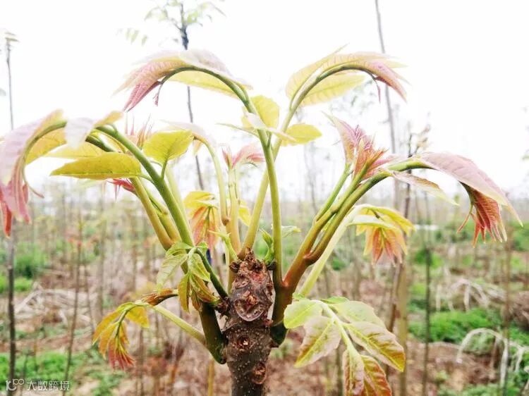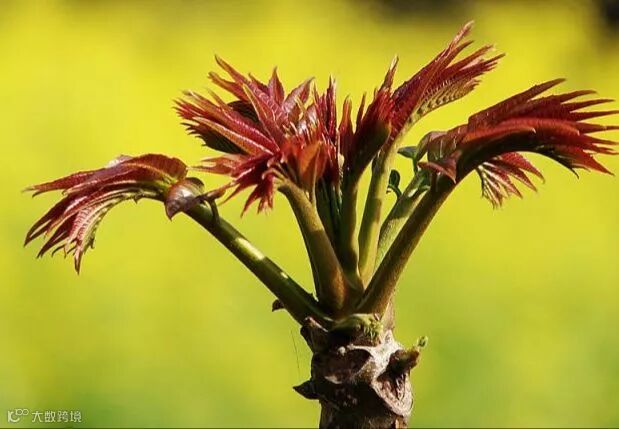 近赏香椿吐赤芽
