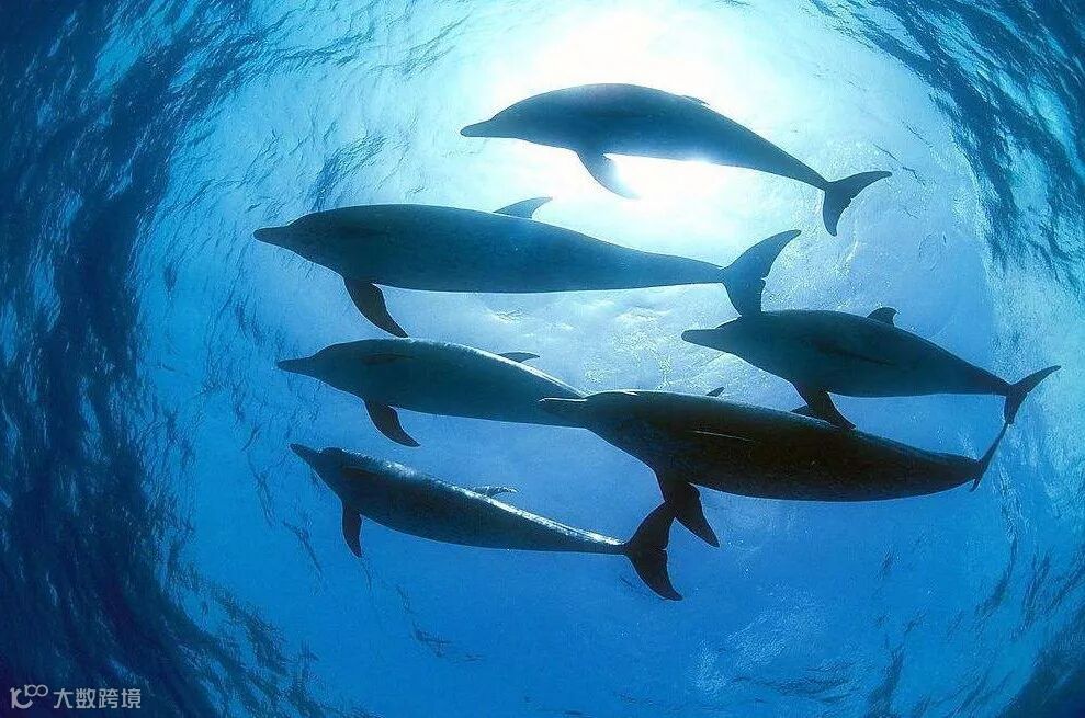 茫茫大海里几只零星的海豚在觅食忽然,它们欣喜若狂地看到海洋深处游动着一个很大的鱼群。这时,它们并没有为饥饿冲向鱼群.急于求成因为如果那样,鱼群就会被冲散。