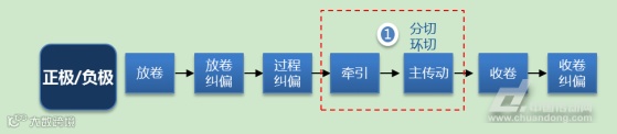 分切(所用设备:分条机)是将较宽的整卷极片连续纵切成若干所需宽度的窄片。极片在分切中遭遇剪切作用断裂失效,分切后的边缘平整程度(无毛刺、无屈曲)是考察分条机性能优劣的关键。