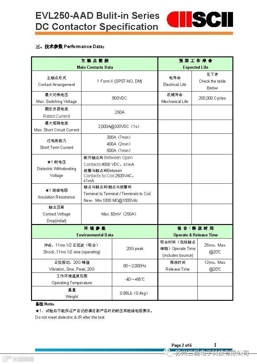 2. 高压直流接触器的常用参数:触点参数、常开触点、常闭触点、性能参数、绝缘电阻、耐压、工作电流、工作电压、安装孔尺寸、安装孔大小等等;