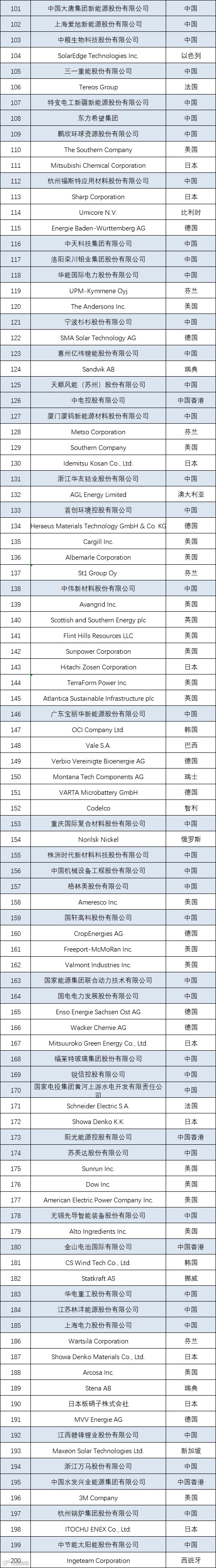 值得注意的是,在此榜单中,储能板块企业占比也有提升,包括与宁德时代和国轩高科均有合作的晶科能源(排名第8位),以及隆基股份(排名第13位)、阳光电源(排名第48位)等。