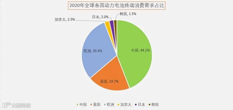 《报告》指出,坐拥全球最大的消费市场和新能源汽车销售额,中国市场动力电池需求在过去5年内位居世界首位,2016年~2020年,以24.3%的CAGR增长。公开数据显示,2020年,中国市场对动力电池的需求占全球的44.1%,欧洲占30.4%,美国占19.7%,加拿大占2.3%,日本占2.0%,韩国占1.5%。