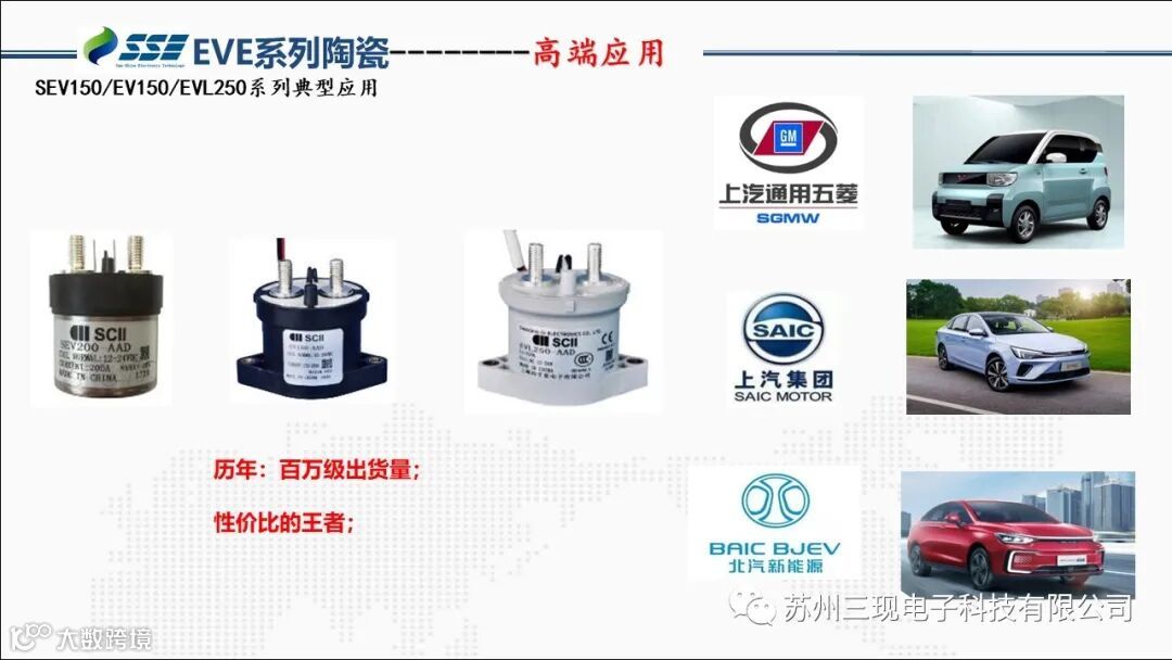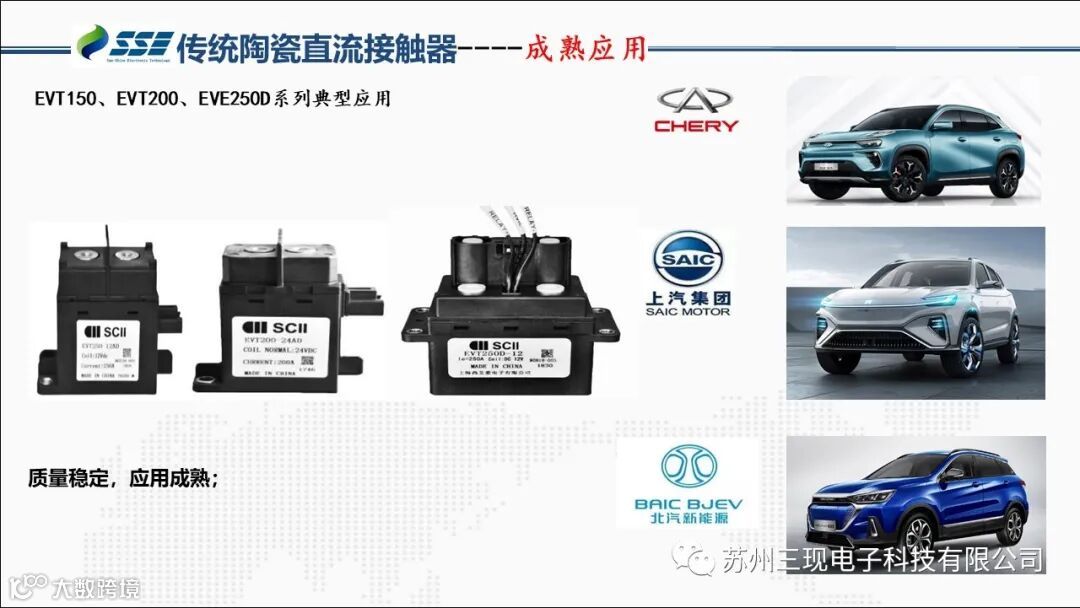 苏州三现新能源事业部一直专注于新能源汽车和新能源储能的安全技术与产品的系统解决方案。我们可提供用于新能源汽车的高压直流接触器、直流高压保险丝、维修开关、高压连接器和高压线束总成、电流霍尔传感器、高精度低温漂电阻、大功率电阻和传感器等产品。
