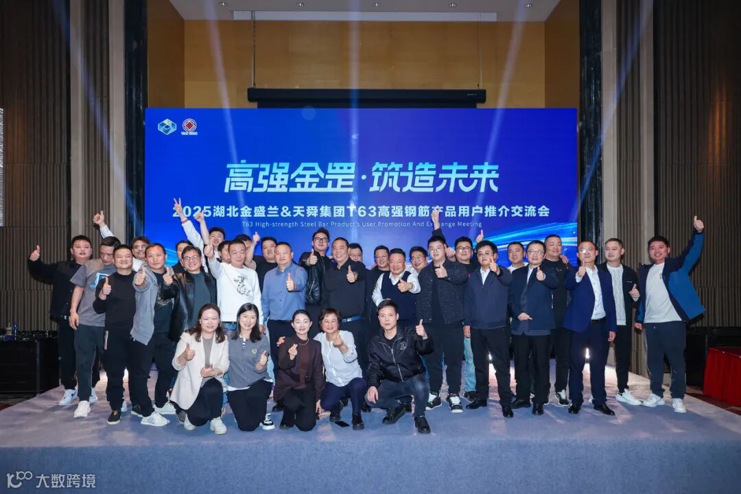 至此,湖北金盛兰&天舜集团 T63 高强钢筋产品用户推介交流会圆满结束,此次会议 不仅为 T63 高强钢筋的推广搭建了专业平台,更彰显了湖北金盛兰与天舜集团引领行业技 术革新、践行绿色发展的决心。未来,双方将继续以创新为驱动,携手合作伙伴,共同书 写高强钢筋赋能建筑产业升级的新篇章。
