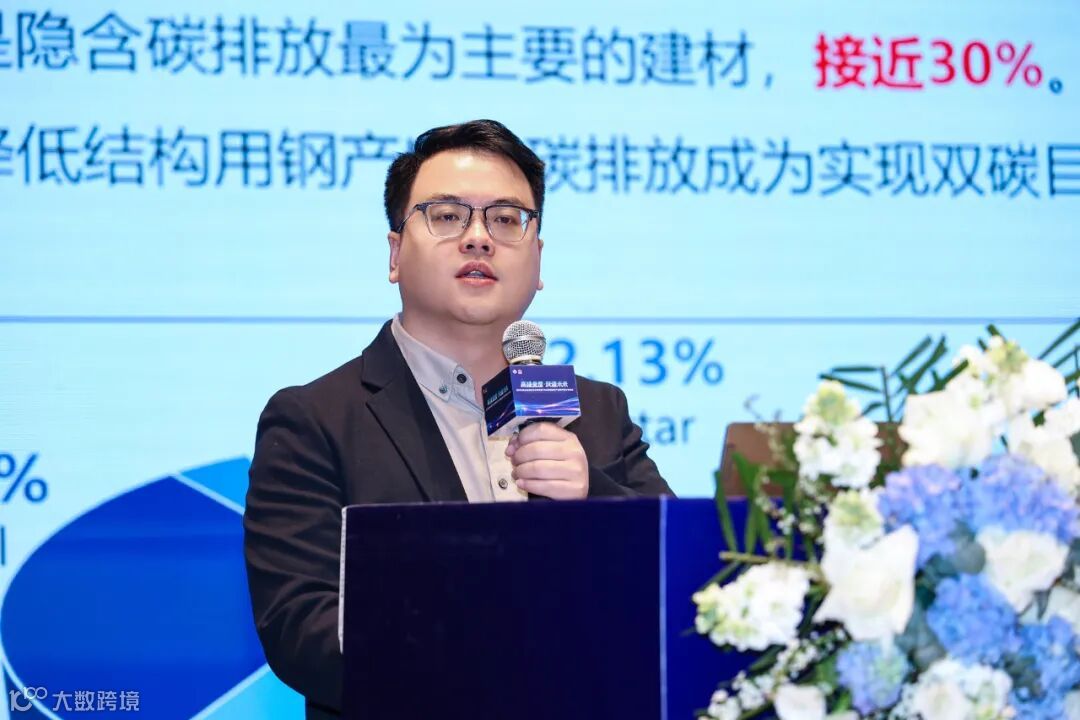 江苏天舜金属材料集团有限公司大区总经理费建军表示,天舜集团自 1996 年创立,深 耕建筑钢材领域,从镀锌钢绞线起步,逐步突破技术壁垒。2006 年起,投入数亿资金攻克 600MPa 级高强钢筋(T63)技术难题,通过原位加载试验、爆破测试等验证其性能,填补国 内空白。T63 高强钢筋强度提升 50%,节材率 33%,综合成本降低 10%,广泛应用于南京禄 口机场、阿里巴巴华东总部等标志性项目,覆盖全国 20 余省市,近万个项目累计使用数百 万吨,助力“中国建造进化史”。在环保方面, 每推广一万吨 T63,相当于为地球种植 10 万 棵红杉;若全行业替代,可节省钢材再造 150 座鸟巢,减排量堪比半个亚马逊雨林。费总 表示,希望未来持续推进绿色低碳建筑技术研发,推动中国产品标准走向世界,与产业链伙 伴共建产能,共享市场红利。并呼吁行业同行共筑低碳未来,彰显企业使命与社会担当。在以上三位领导的精彩致辞过后,接着进入会议的正式议题环节。