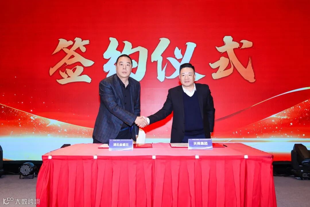 在精彩的分享会结束之后,湖北金盛兰与天舜集团举行了隆重的签约仪式。湖北金盛兰 副总经理刘达与天舜集团大区总经理费建军作为各自企业代表签署合作协议,未来双方将围 绕技术研发、市场推广及供应链优化等方面展开深度合作,共同打造高强钢筋产业生态链。这一合作标志着两家企业资源整合迈入新阶段,为行业树立了协同创新的标杆。在接下来的茶歇和晚宴交流环节中,各参会嘉宾围绕 T63 高强钢筋产品的系列问题展 开自由交流讨论,现场气氛热烈。湖北金盛兰与天舜集团也再次向长期支持企业发展的合作 伙伴表达了诚挚谢意,进一步拉近了彼此之间的距离。