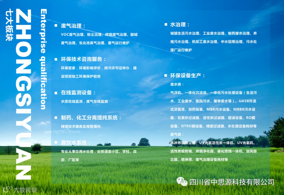 中思源科技专注于污水治理整体解决方案、废气治理整体解决方案、环保设备生产、 环保咨询服务、 环保管家服务、在线监测设备及污染治理设备运行维护等六大板块。