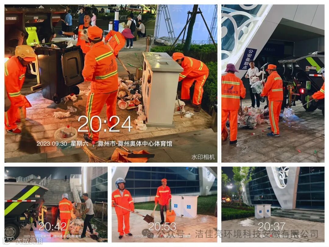 2023年9月29日-9月30日保障薛之谦滁州站演唱会期间,洁佳亮环境科技(安徽)有限公司做到喜迎中秋,欢度国庆,假期“我”在岗,保障不打烊,圆满完成保障任务!每一份坚守,都值得被铭记;每一份努力,都值得被尊重。当中秋遇上国庆,当团圆碰撞职责坚守平凡岗位、守护城市洁净是环卫人对城市最美好的祝福!