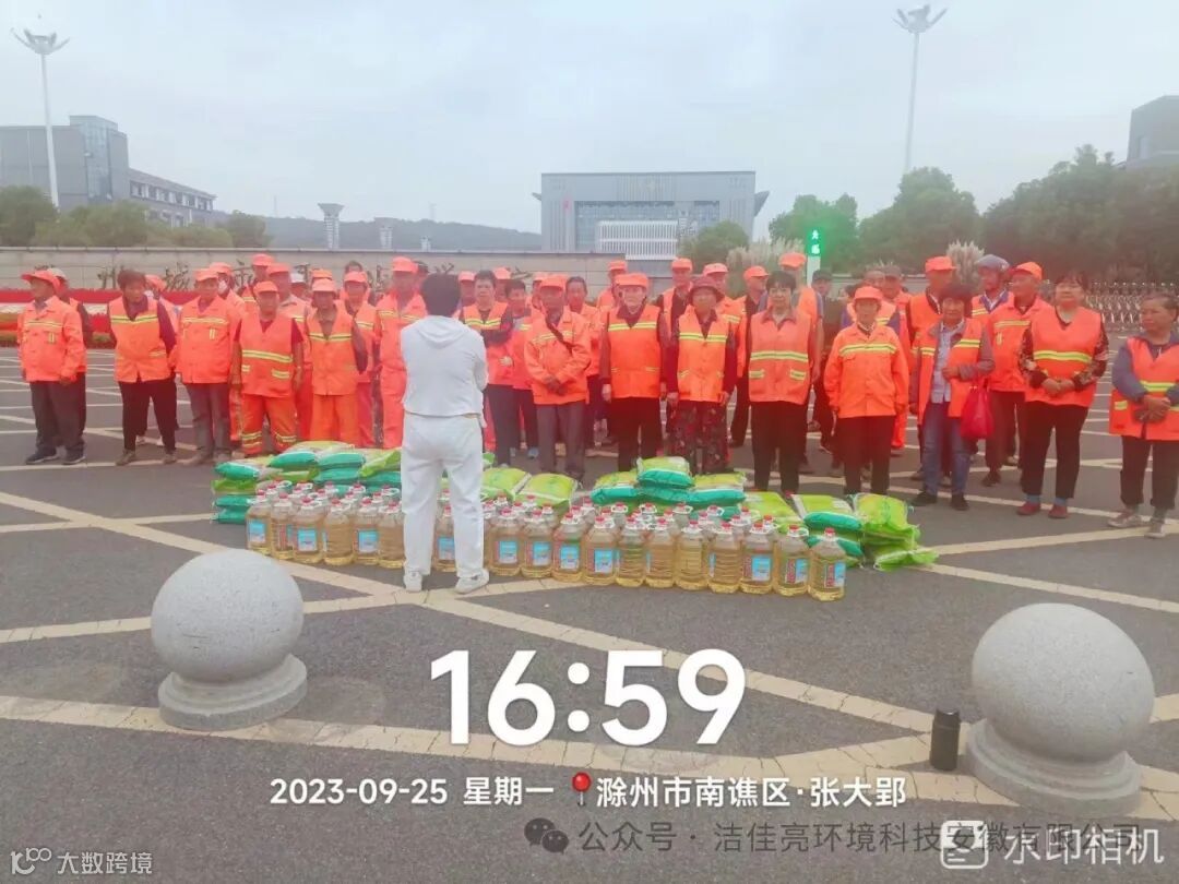 中秋佳节即将来临,为表达对环卫工人的关爱。2023年9月,洁佳亮环境科技(安徽)有限公司南谯区明湖分公司胡经理慰问工作在一线的环卫工人,为他们送上节日的祝福及发放中秋福利,感谢他们为城市文明整洁付出的辛勤劳动。