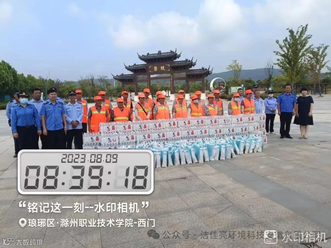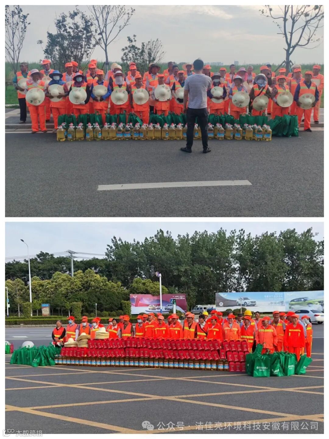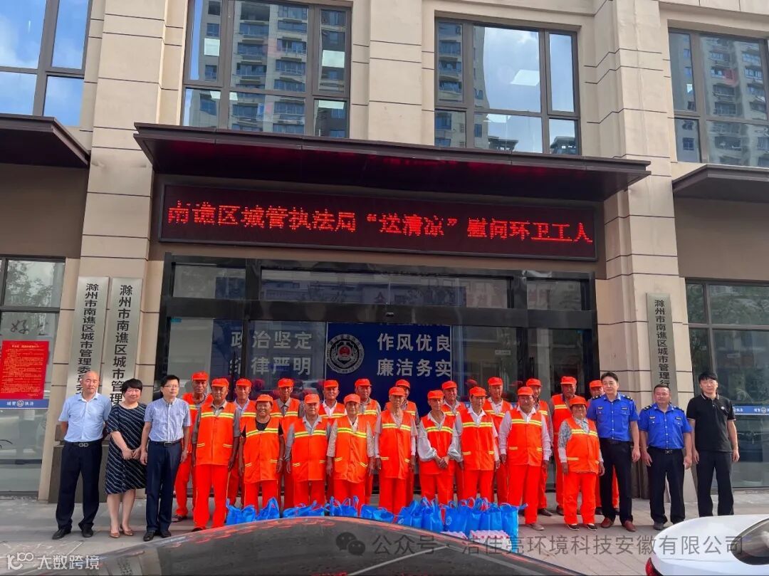 感谢琅琊山风景区名胜区管委会行政执法局领导及市劳动监察支队各位领导对滁州市洁佳亮环卫服务有限公司关心与支持,举办了一场“炎炎夏日送清凉 滴滴关怀暖人心”社会公益活动——环卫工人群体齐聚一堂,共同享受夏日的清凉。也感谢各位领导对辛勤工作的环卫工人们的关怀!