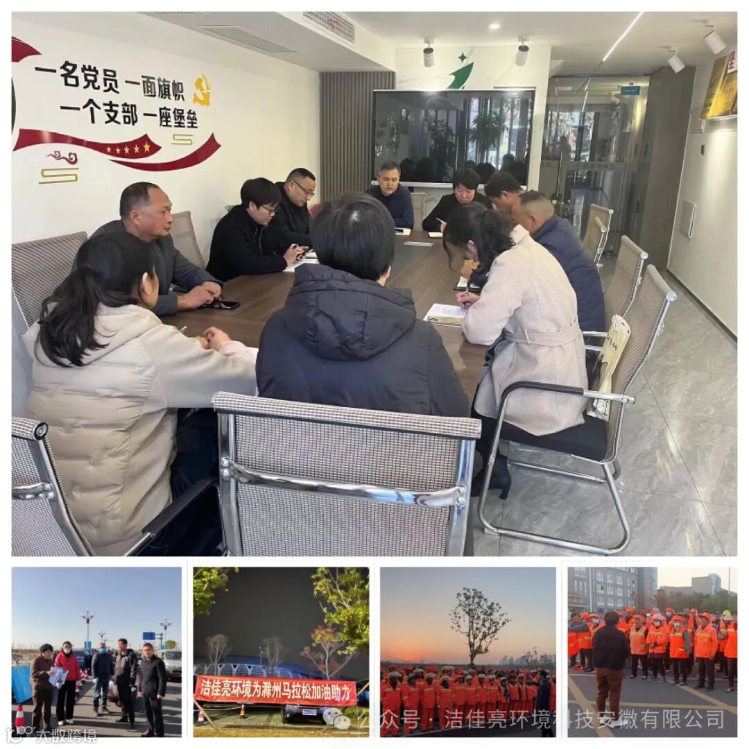 醉美滁州,乐跑亭城!赛前保障不停歇,全力助跑马拉松!为了做好2023年11月26日滁州马拉松赛事的保障,洁佳亮环境科技(安徽)有限公司以最好的环境面貌迎接马拉松。举全司之力,全面动员,全面布置,精心组织,扎实工作,保障马拉松圆满成功!