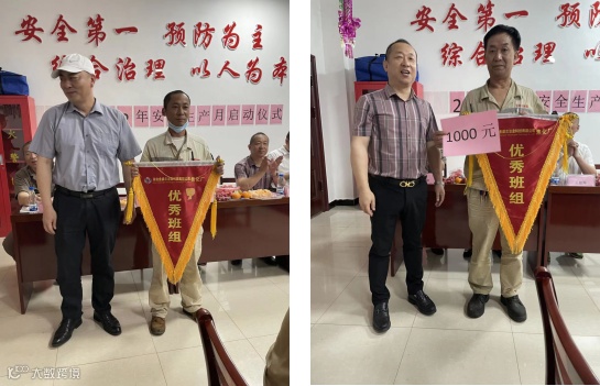各级领导为“流动红旗”五月份先进单位及班组颁发奖励