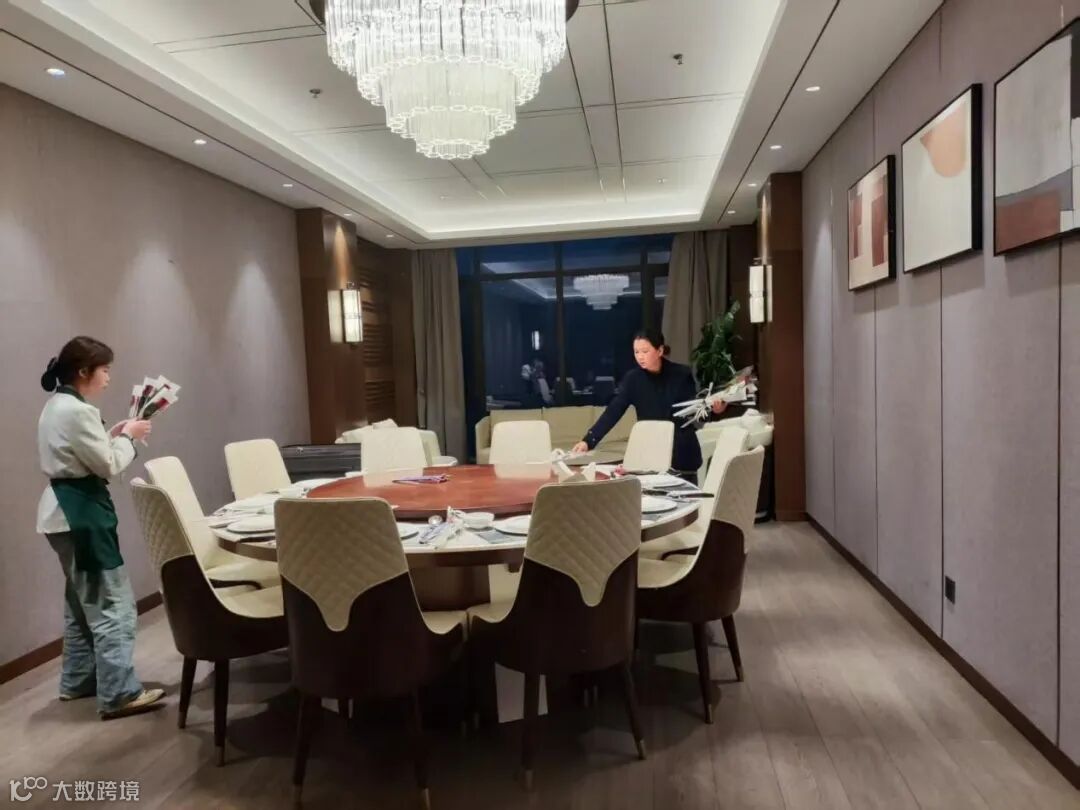 城发集团子公司惠信餐饮承接墨云酒店餐厅为3月8日妇女节在此就餐的客人准备就餐服务。