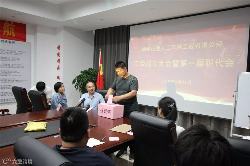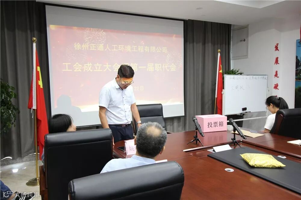 2019年06月22日,徐州正通人工环境工程有限公司工会成立大会暨第一届职工代表大会在公司大会议室隆重召开。公司董事长张义、生产总监兼总经济师孙晋伟、行政总监姚焕刚、营销总监庄勇等出席了会议。