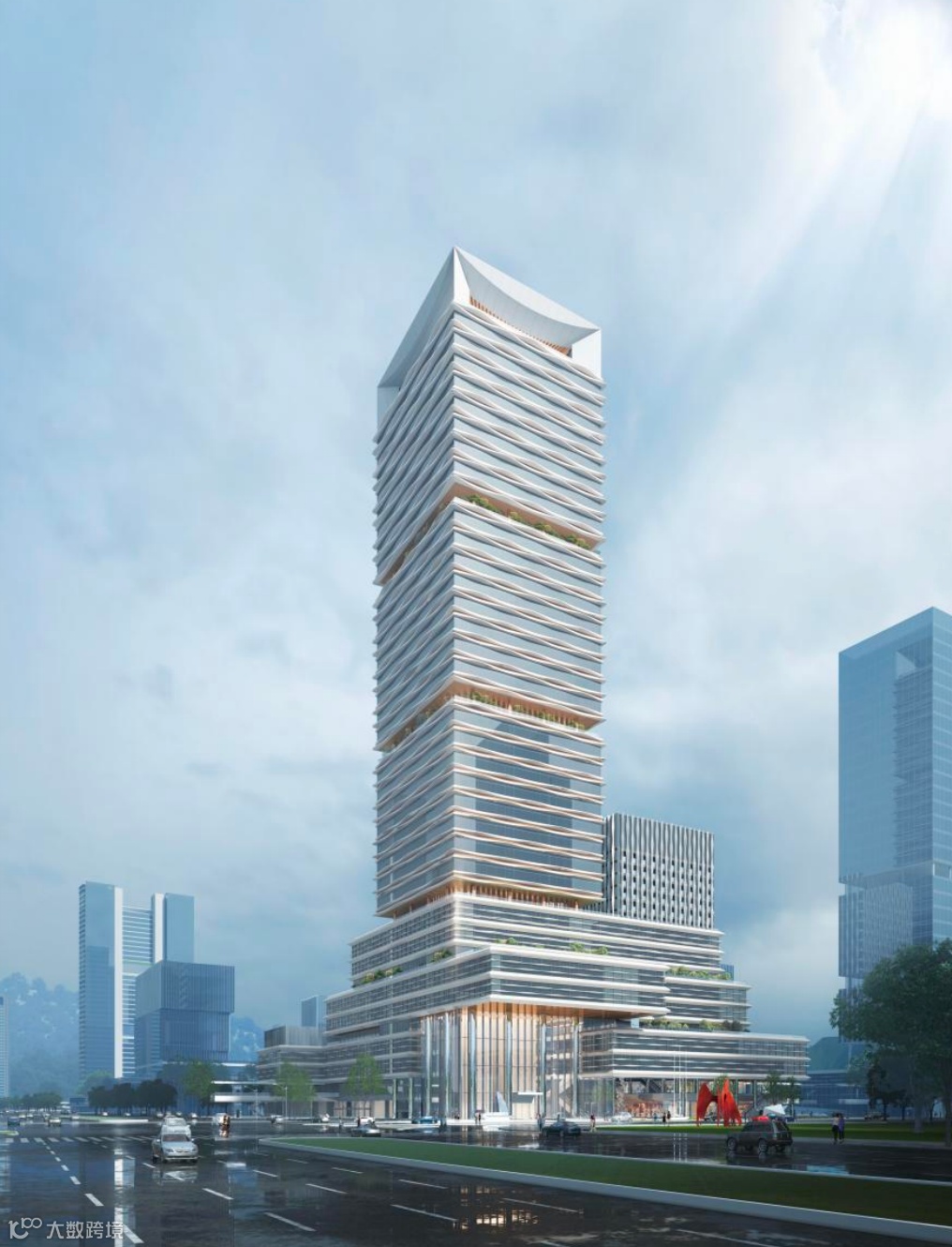 双塔轮廓模拟山峦叠嶂,呼应前海的自然肌理;
