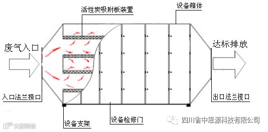 当废气由风机提供动力,负压进入吸附箱后进入活性炭吸附层,由于活性炭吸附剂表面上存在着未平衡和未饱和的分子引力或化学键力,因此当活性炭吸附剂的表面与气体接触时,就能吸引气体分子,使其浓聚并保持在活性炭表面,此现象称为吸附。利用活性炭吸附剂表面的吸附能力,使废气与大表面的多孔性活性炭吸附剂相接触,废气中的污染物被吸附在活性炭表面上,使其与气体混合物分离,净化后的气体高空排放。